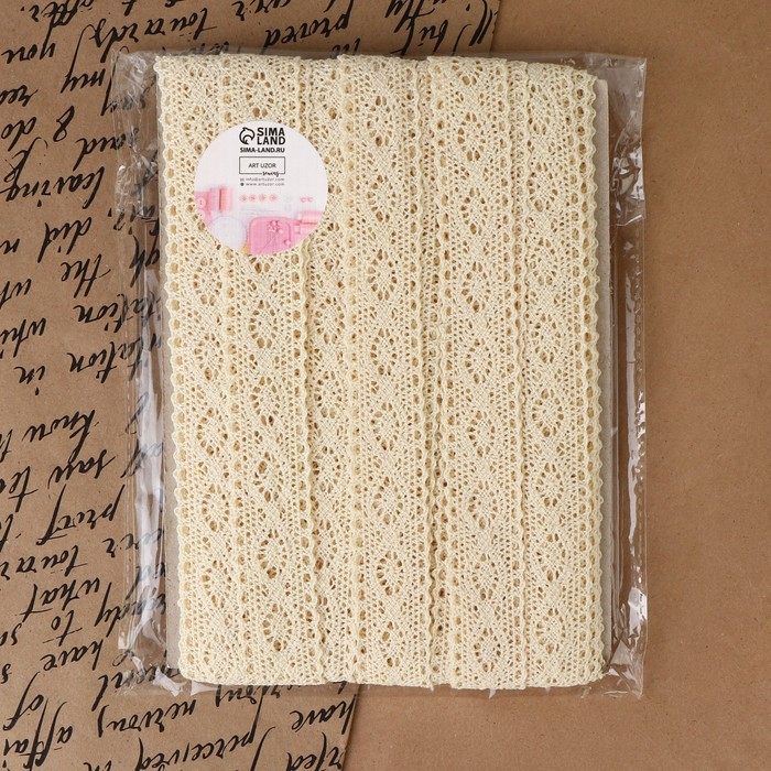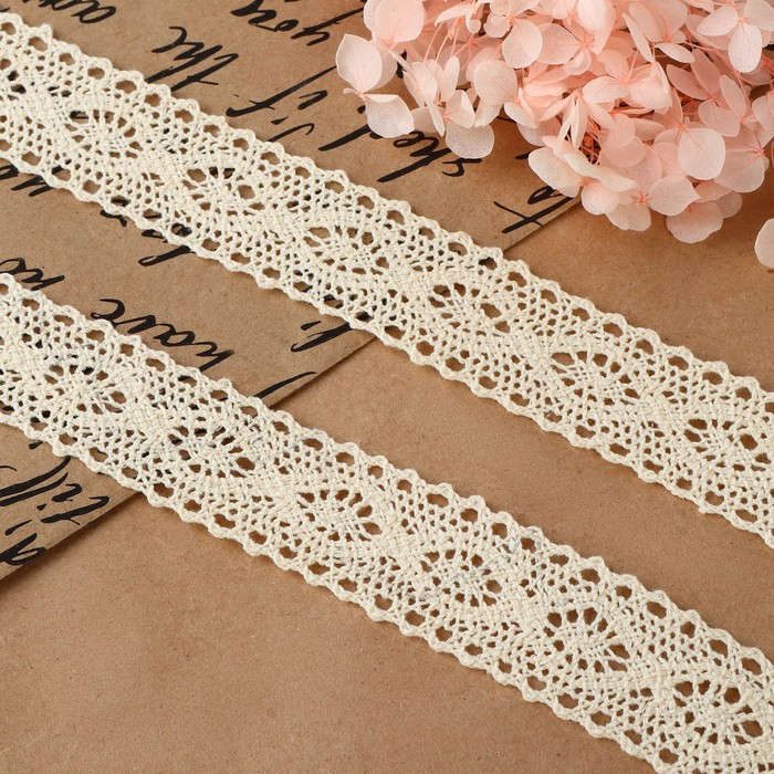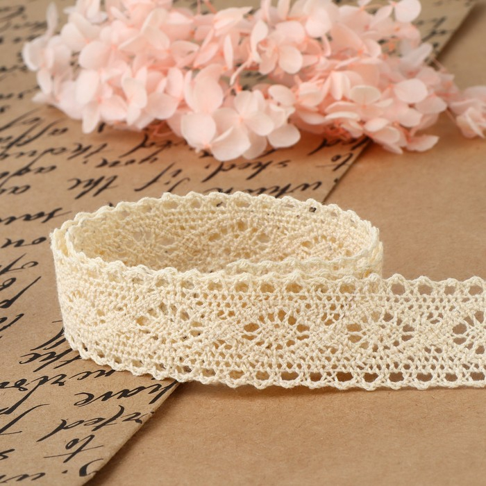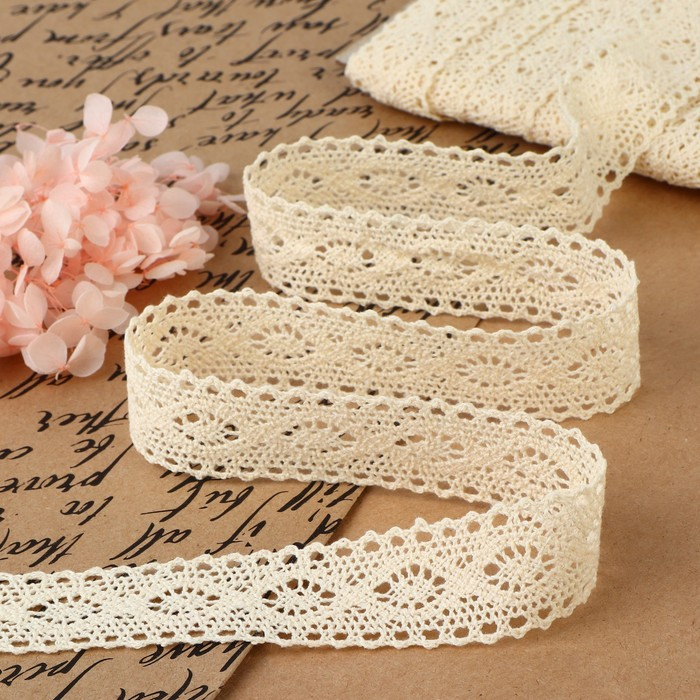 Кружево вязаное, 25 мм × 15 ± 1 м, цвет бежевый