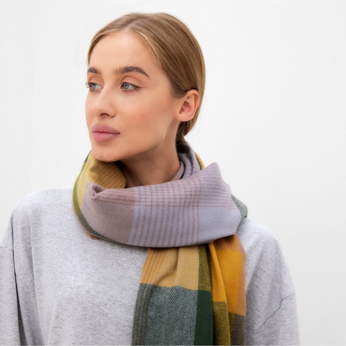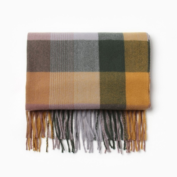 Шарф зимний с кистями MINAKU 65*180 + 8 см клетка