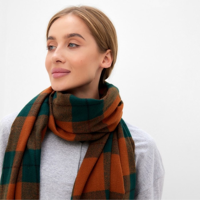 Шарф зимний с кистями MINAKU 65*180 + 3 см клетка
