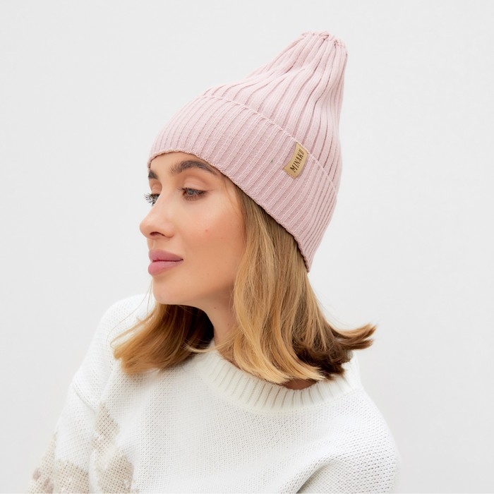 Шапка женская MINAKU "Трюфель" цвет пудра, размер 54-56