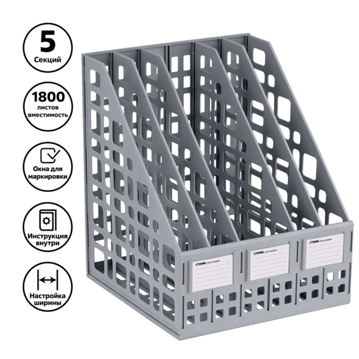 Лоток для бумаг cборный, вертикальный, 5 отделений, серый