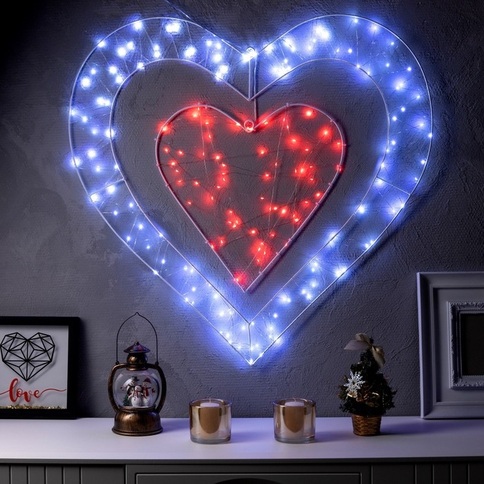 Светодиодная фигура «Сердце» 80 см, металл, 220 В, 8 режимов, свечение красное, белое