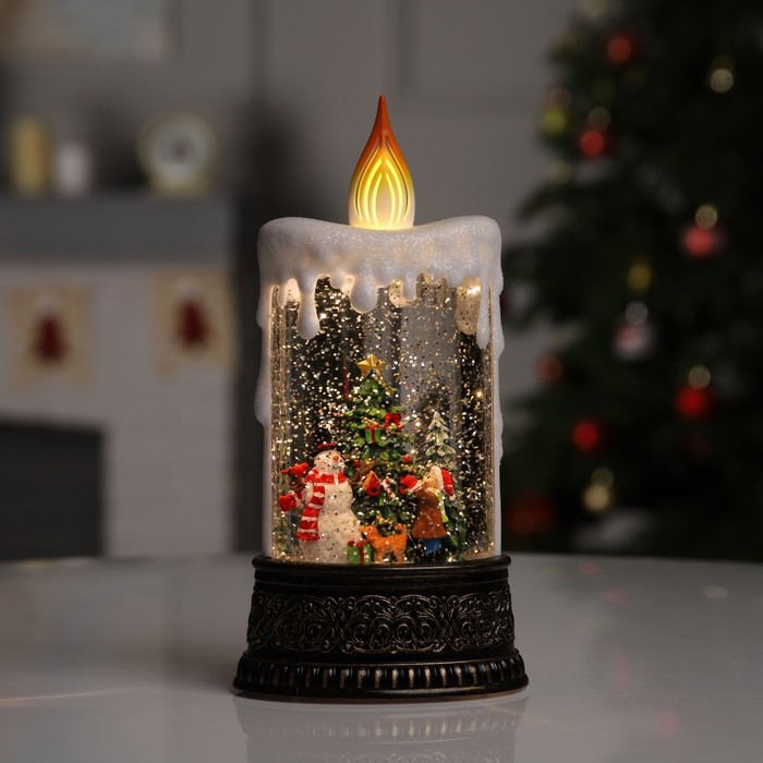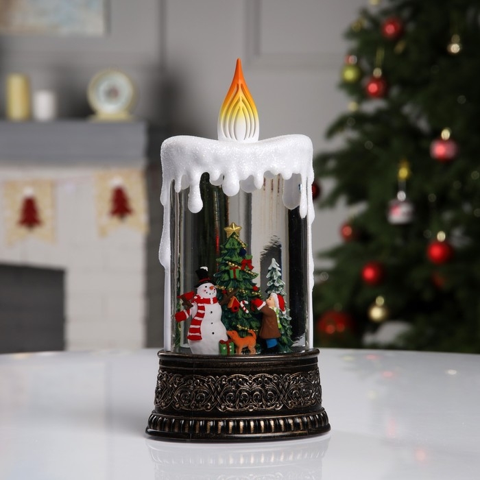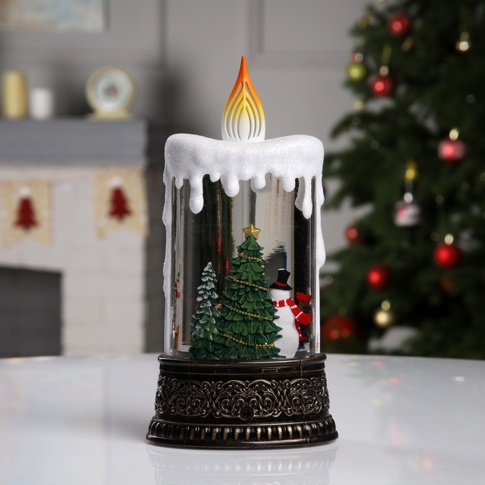Светодиодная фигура «Свеча со снеговиком» 12.3 × 24 × 8 см, пластик, батарейки ААх3 (не в комплекте), USB, свечение тёплое белое