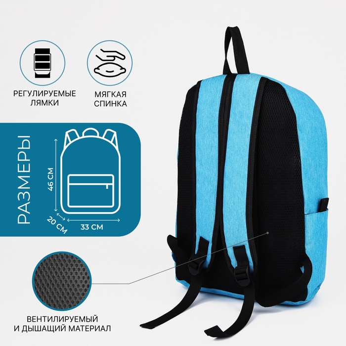 Рюкзак школьный из текстиля на молнии, FULLDORN, 3 кармана, цвет голубой