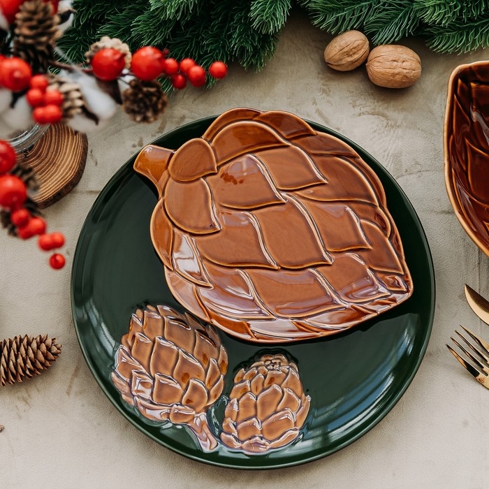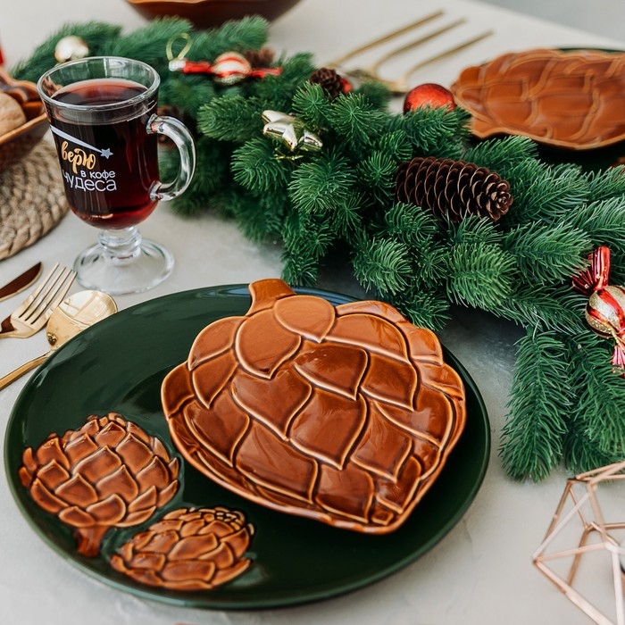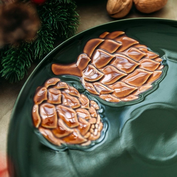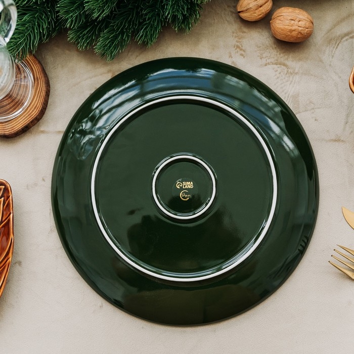 Новый год! Блюдо новогоднее керамическое «Зимний лес», 27 см, цвет зелёный