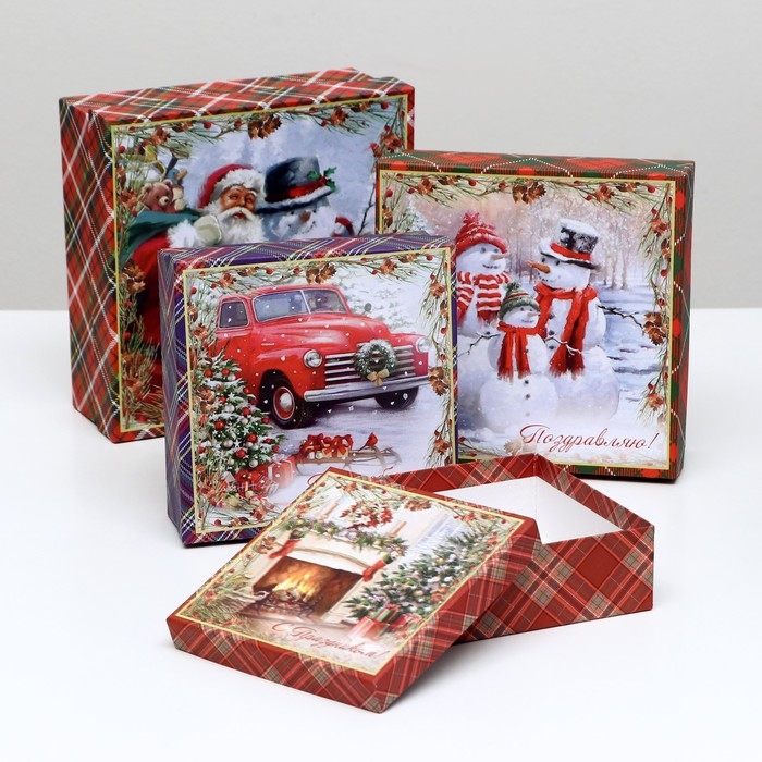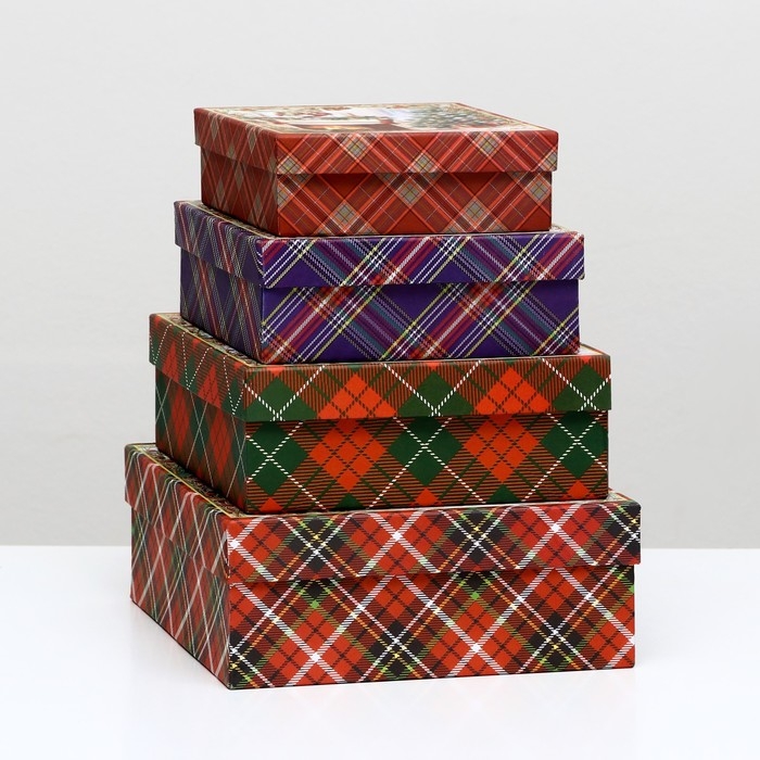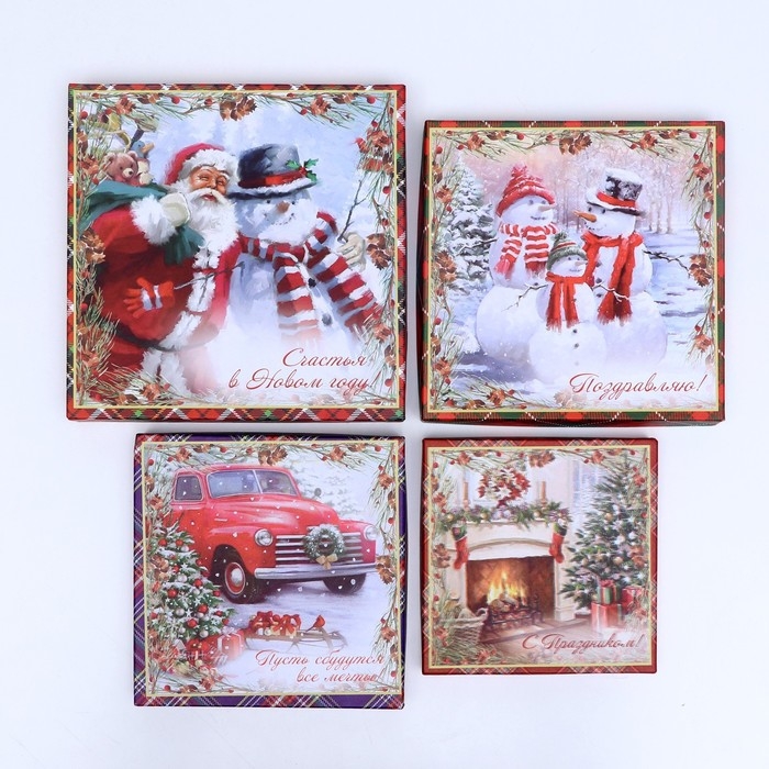 Набор подарочных новогодних коробок 4 в 1 "С праздником", 20 х 20 х 8 см. Новый год