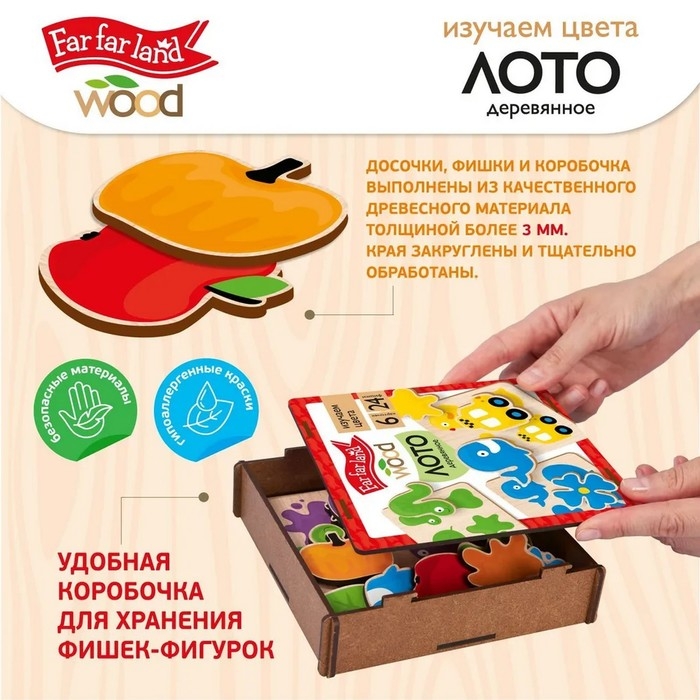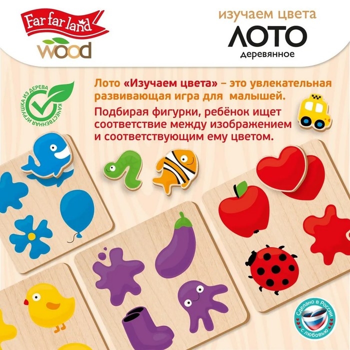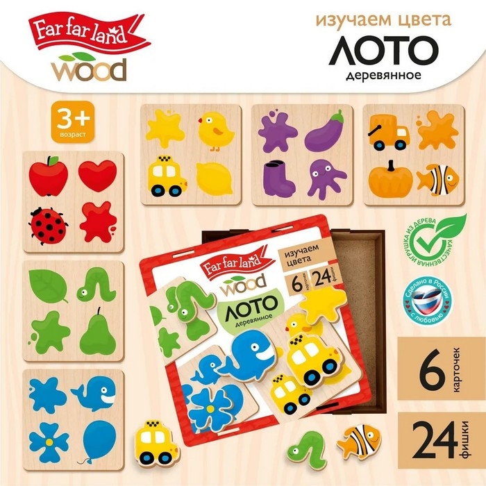 Лото деревянное «Изучаем цвета», в деревянной коробке