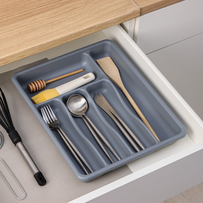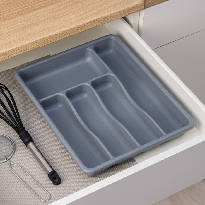 Лоток для столовых приборов, 36×29×5 см, 5 отделений, цвет серый