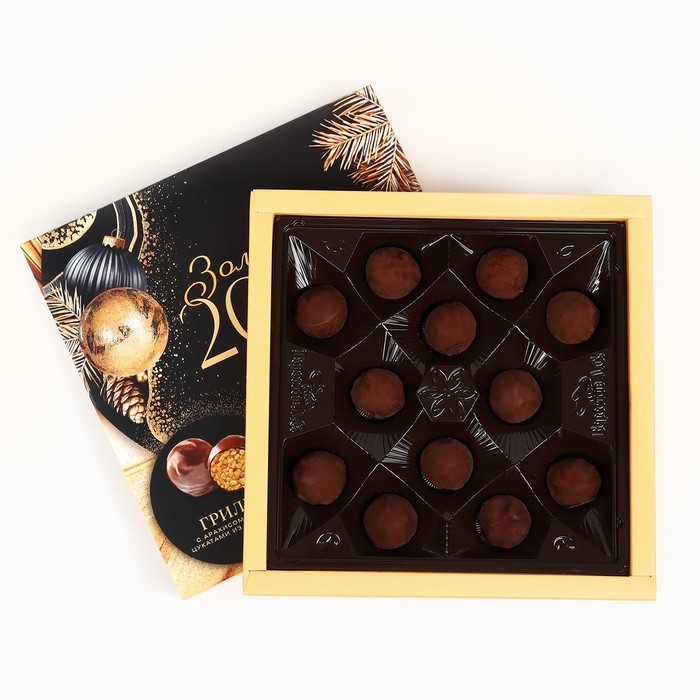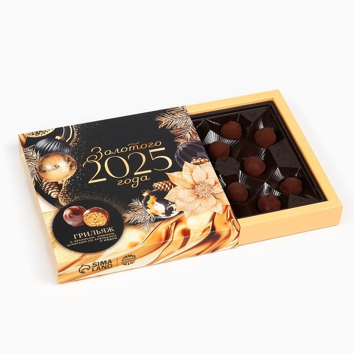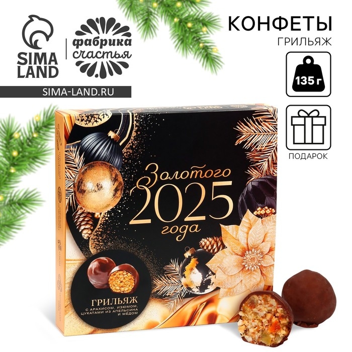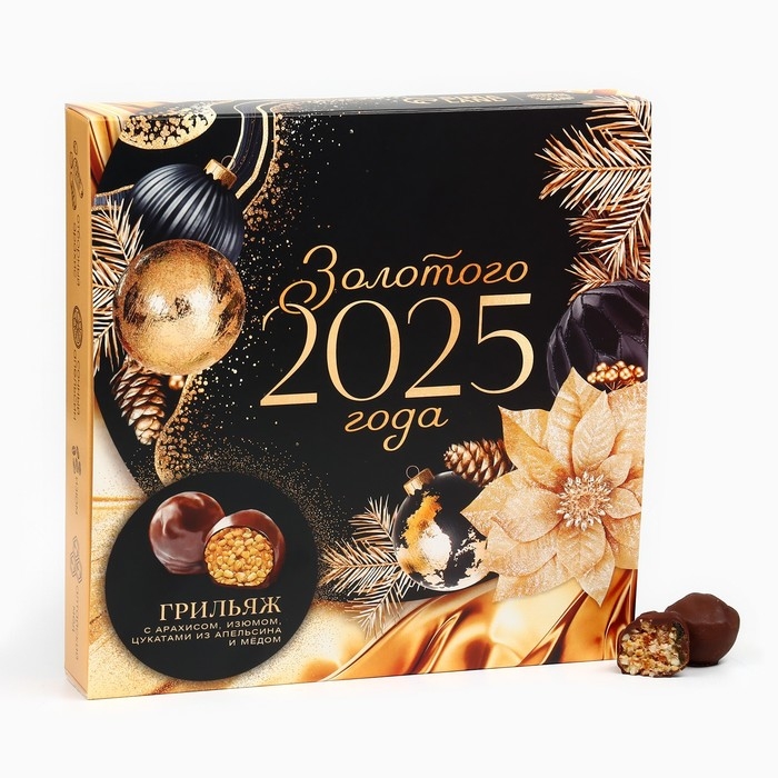 Конфеты грильяж «Золотой шик» с арахисом, изюмом, цукатами из апельсина и мёдом, в коробке, 135 г.