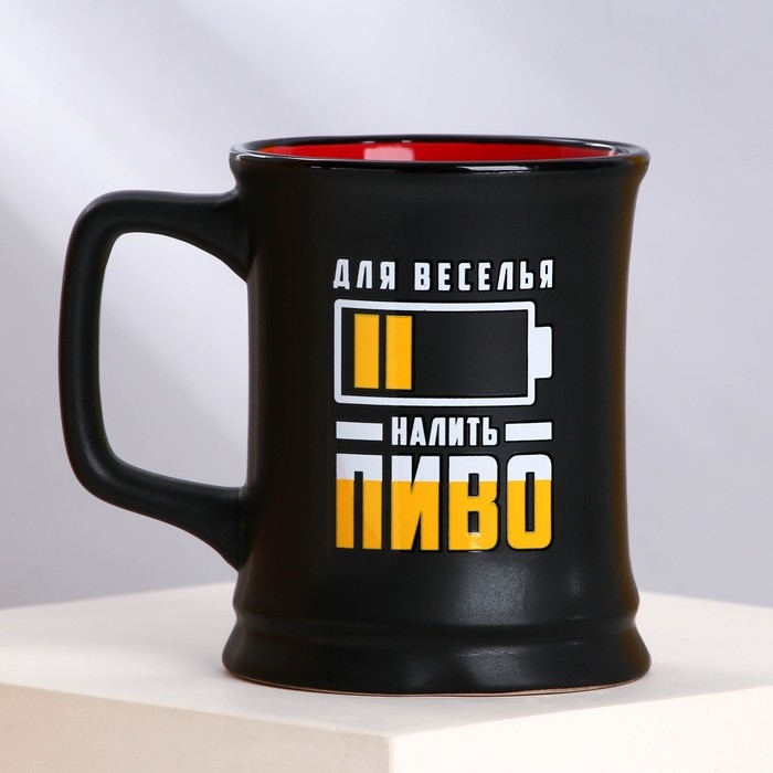 Пивная Кружка керамическая «Налить пиво», 400 мл, цвет чёрный