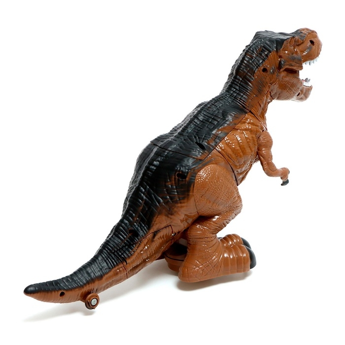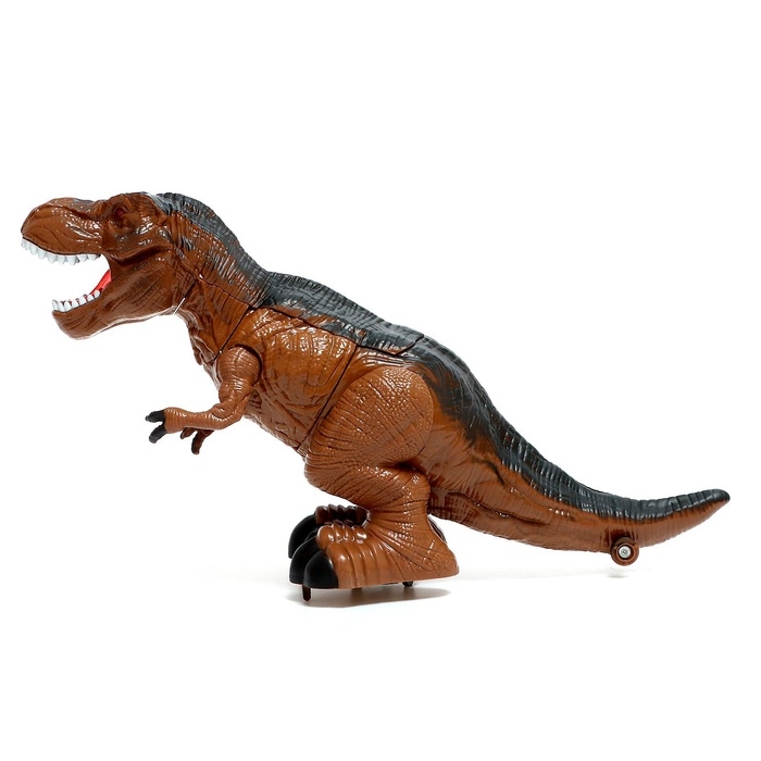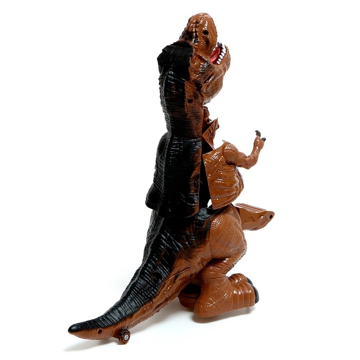 - Во время игры светится рот и глаза. Воспроизводит звуки рычания, рёв и несколько слов на английском языке.