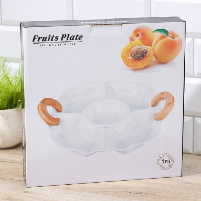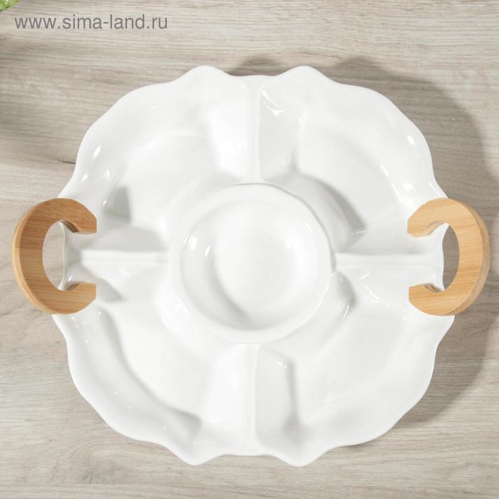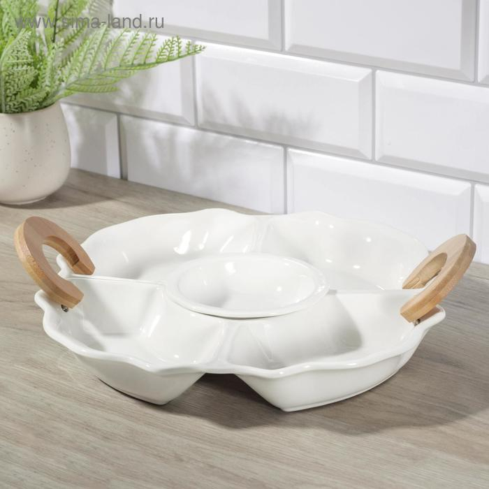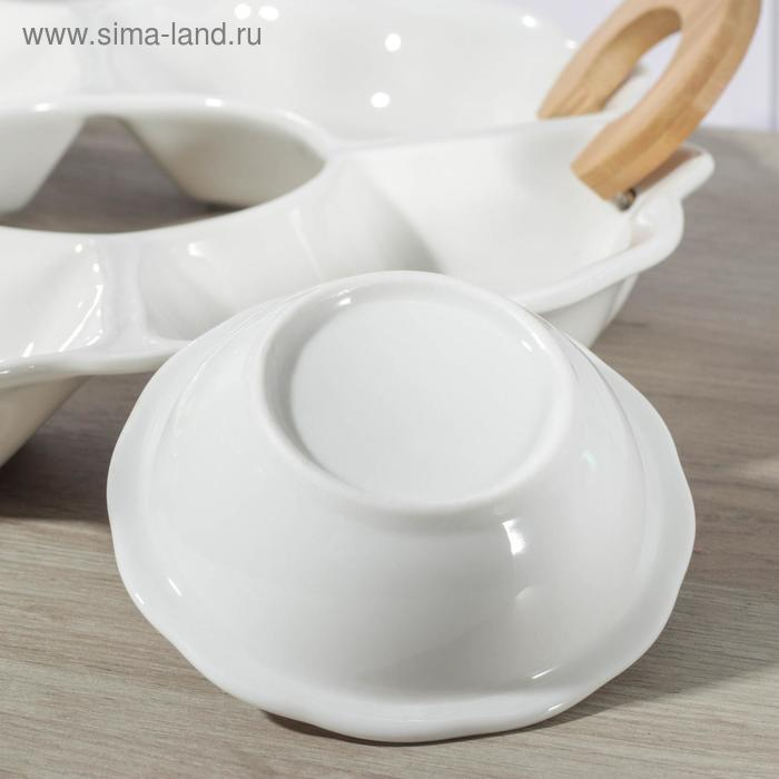 Менажница керамическая 4 секции «Эстет», 34×30×5 см, соусник