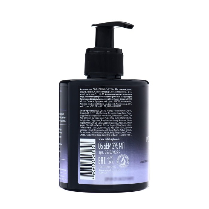 Состав: Aqua, Cetearyl Alcohol, Behentrimonium Сhloride, Ceteareth -20, C12-15 Alkyl Benzoate, Acetamidoethoxyethanol, Phenylpropyldimethylsiloxysilicate, Dimethicone, Dimethiconol, Lanolin, Cera Alba (Beeswax), Butyrospermum Parkii (Shea) Butter, Phenoxyethanol, Methylparaben, Ethylparaben, Propylparaben, Cetearyl Nonanoate, Triticum Vulgare (Wheat) Germ Oil, Caprylic/Capric Triglyceride, Linoleic Acid, Triticum Vulgare (Wheat) Bran Extract, Triticum Vulgare (Wheat) Germ Extract, Camellia Oleifera Seed Oil, Glycerin, Zea Mays (Corn) Starch, Cystoseira Compressa Extract, Dehydroacetic Acid, Benzyl Alcohol, Sodium Benzoate, Gluconolactone, Calcium Gluconate, Parfum, Benzyl Salicylate, Hexyl Cinnamal , Linalool , Hydroxyethylcellulose, Lactic Acid, Acid Violet 43, Disperse Violet 1.