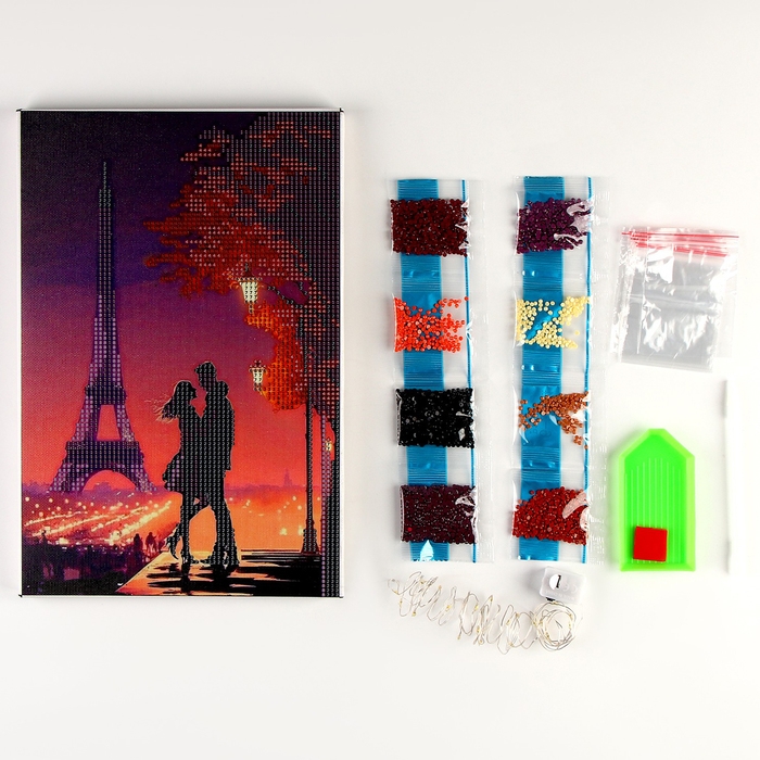 Алмазная мозаика на подрамнике с частичным заполнением «Романтика» с гирляндой, 20 х 30 см