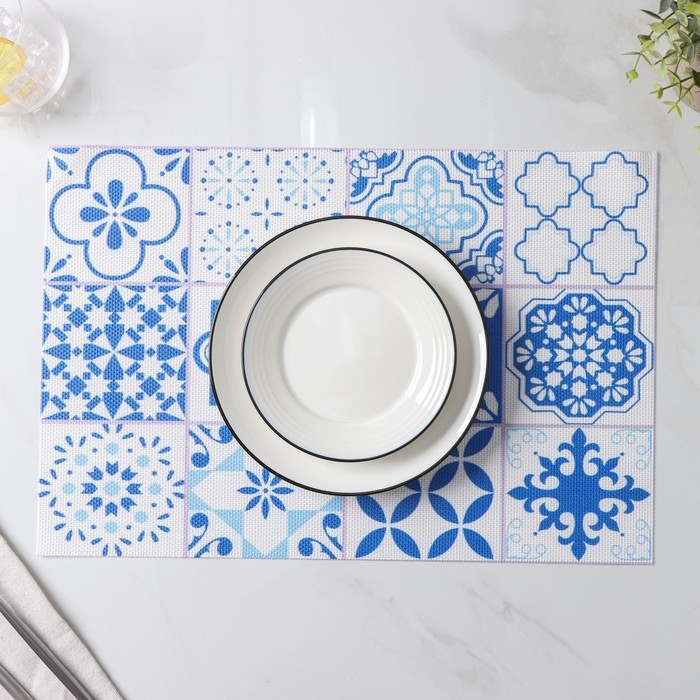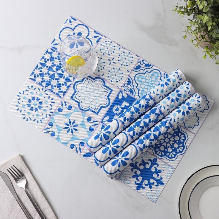 Салфетки сервировочные на стол Доляна «Мозаика», 4 шт, 45×30 см, цвет синий