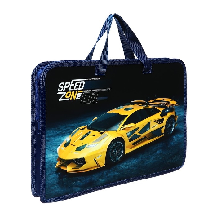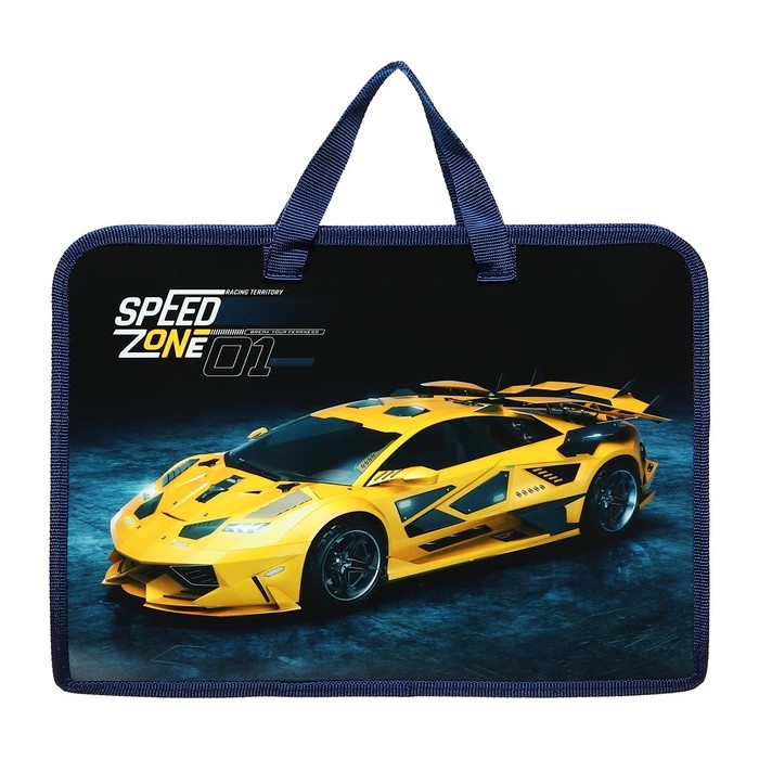 Папка с ручками А4, 340 х 245 х 40 мм, пластиковая, ручки-тесьма, Оникс ПТ-14 Speed zone