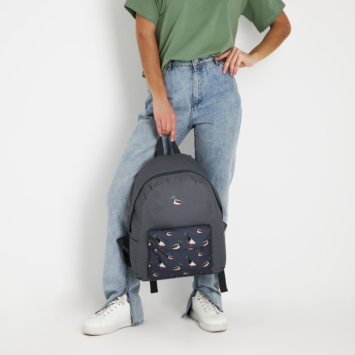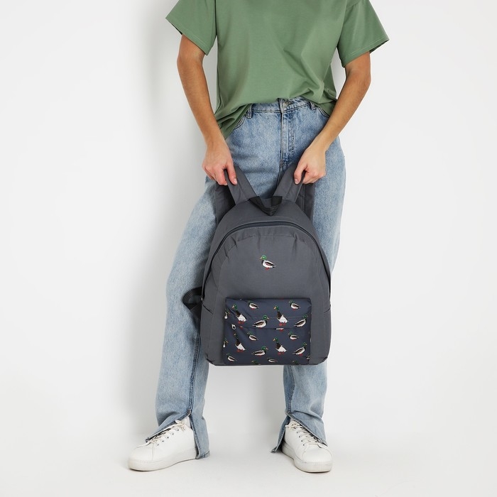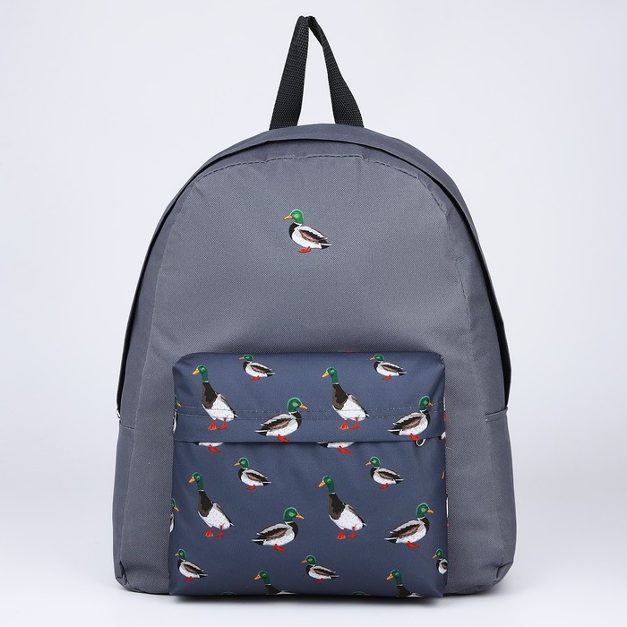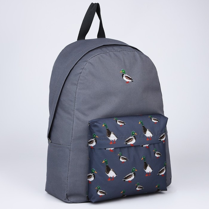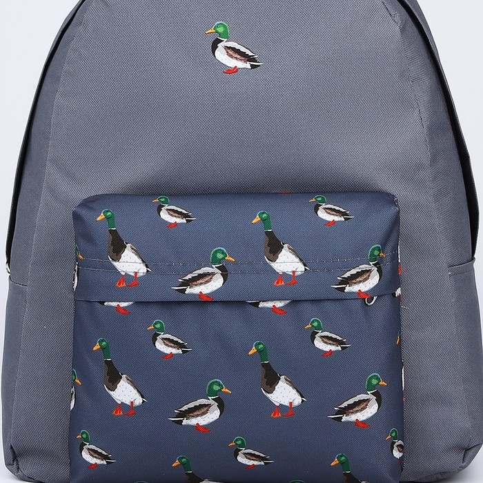 Рюкзак школьный текстильный «Утки», с карманом, цвет серый