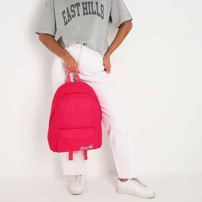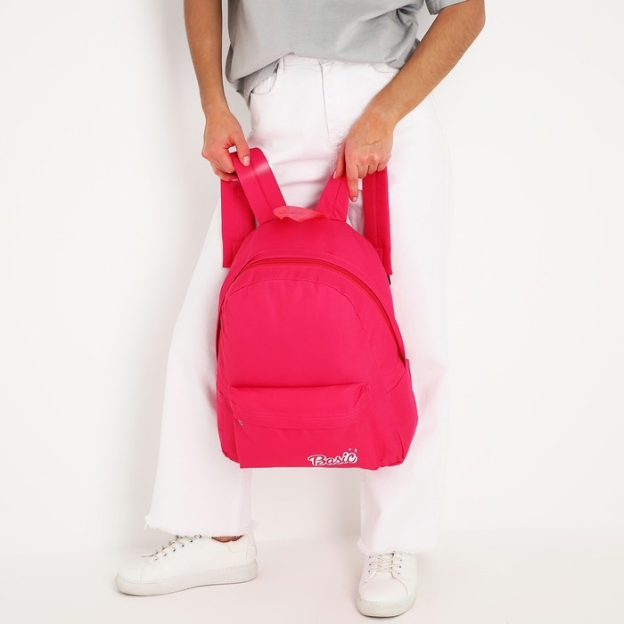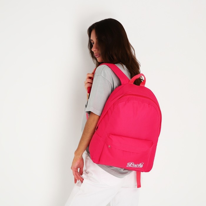 Рюкзак школьный текстильный Basic, с карманом, цвет розовый
