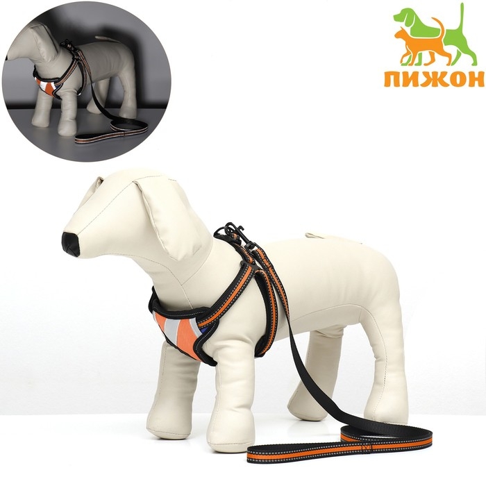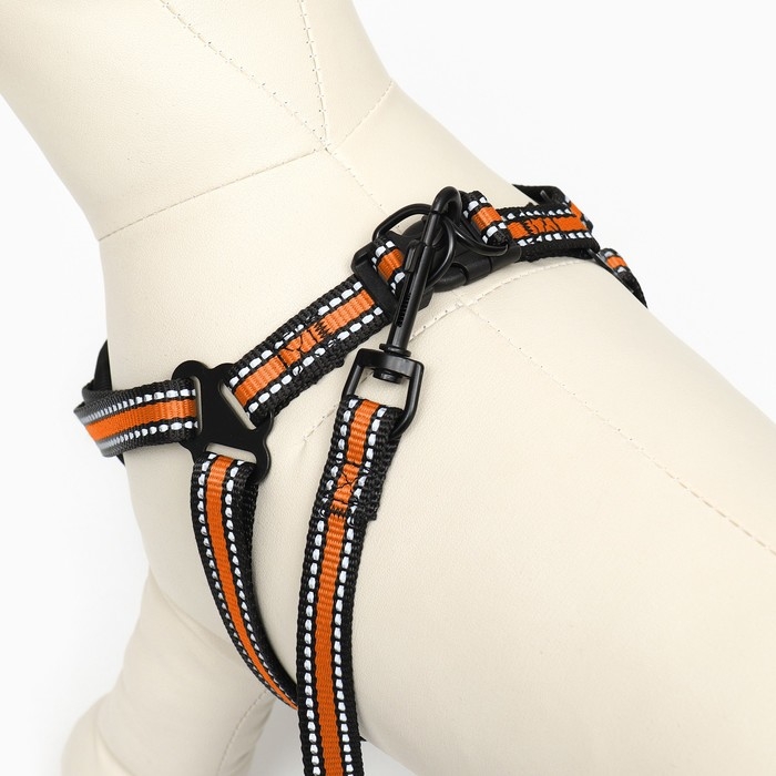 Комплект амуниции светоотражающий, размер M, ОГ 40-70 см, стропа 2 см, оранжевый
