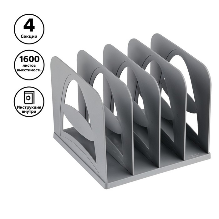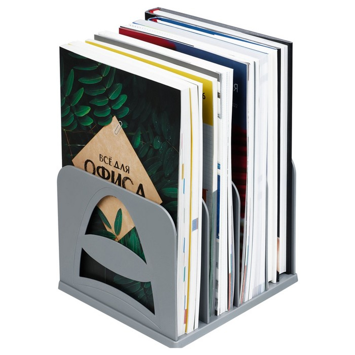 Подставка для журналов и бумаг (сортер) Стамм, сборная, 4 отделения, серая