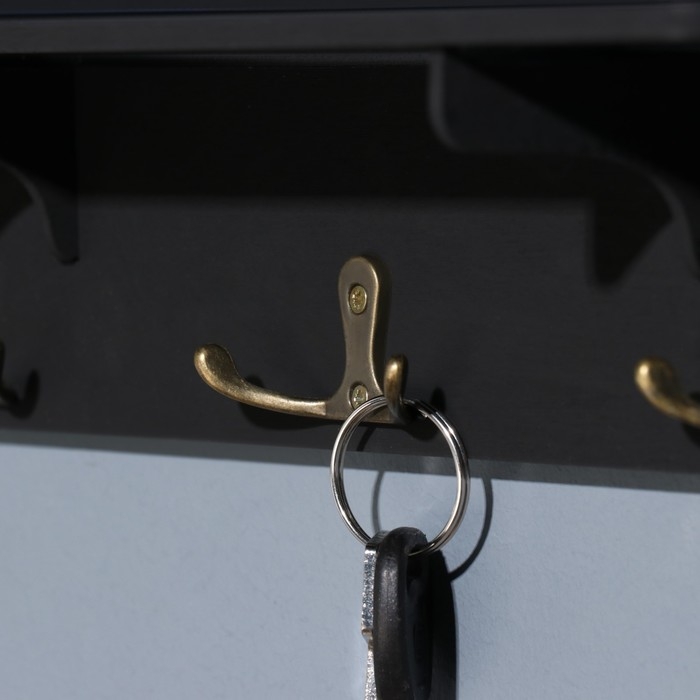 Ключница с полкой "Твой дом ..." черный цвет, 28х23х7,5 см