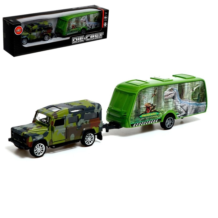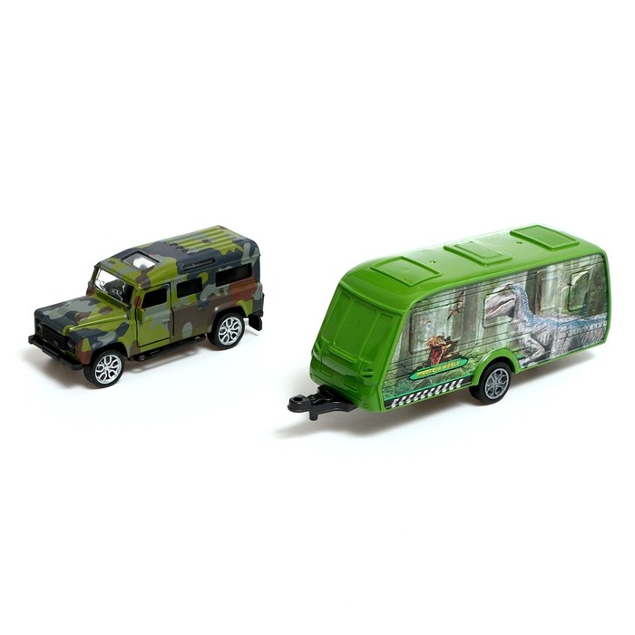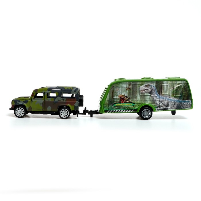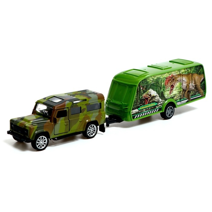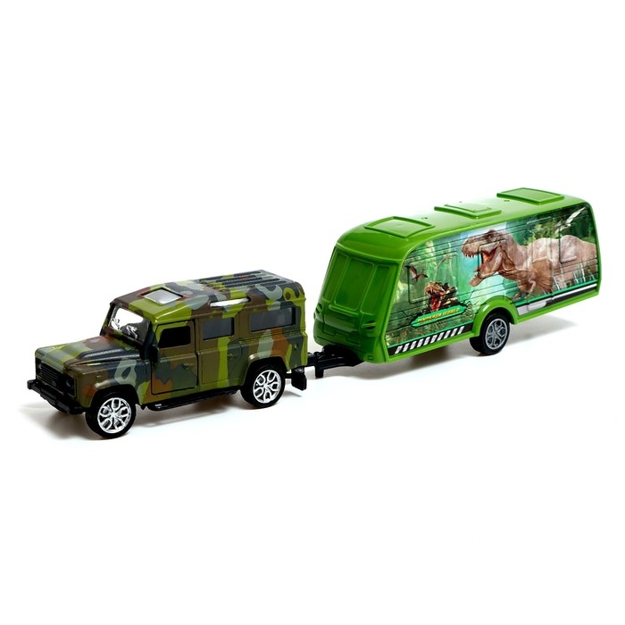 Машина металлическая с прицепом «Динозавр», открываются двери, цвет МИКС