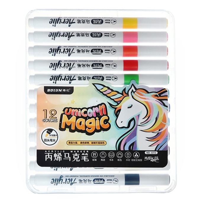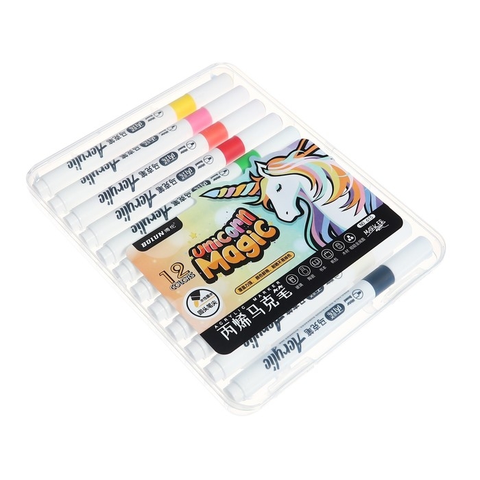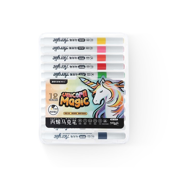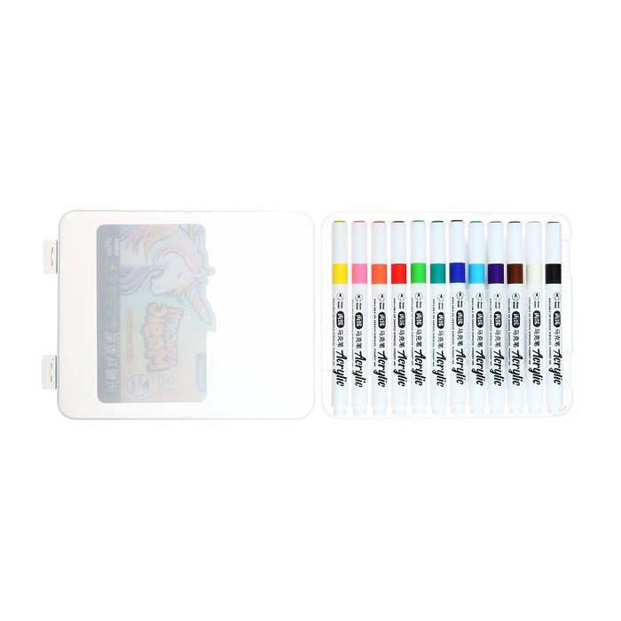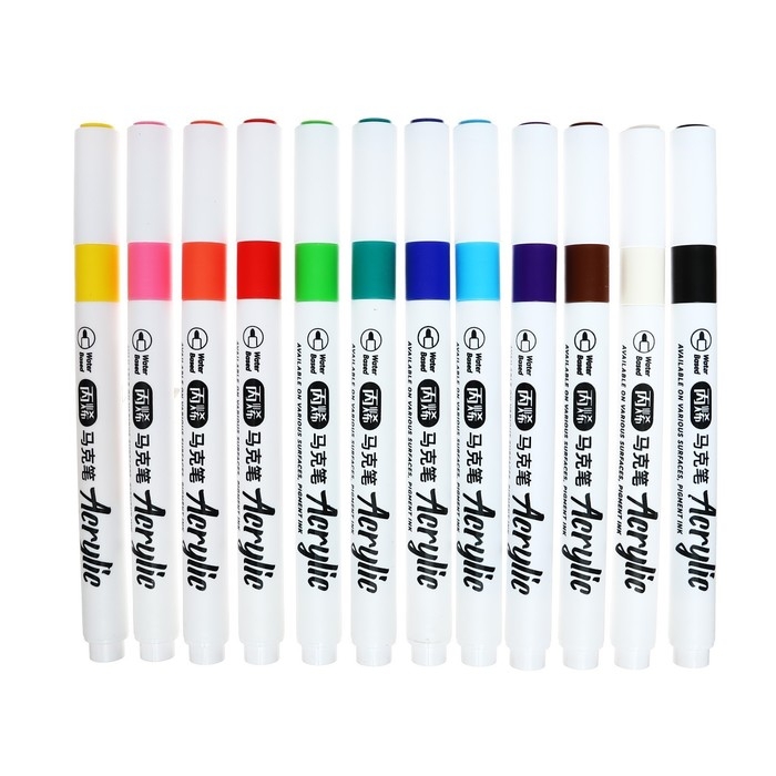 Набор маркеров акриловых 12 цветов, круглый наконечник, для любой поверхности