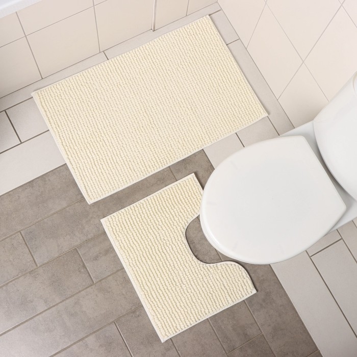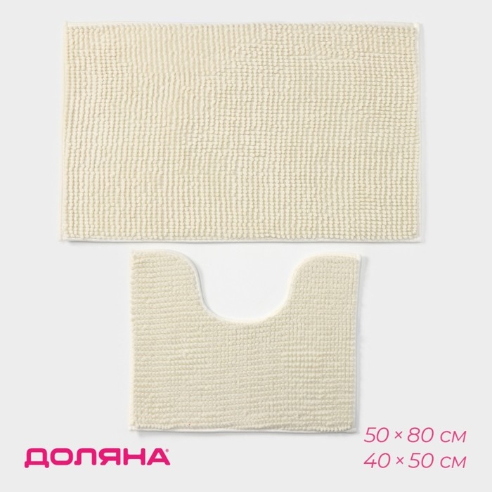 Коврики для ванной и туалета Доляна «Букли», 2 шт: 40×50, 50×80 см, цвет молочный