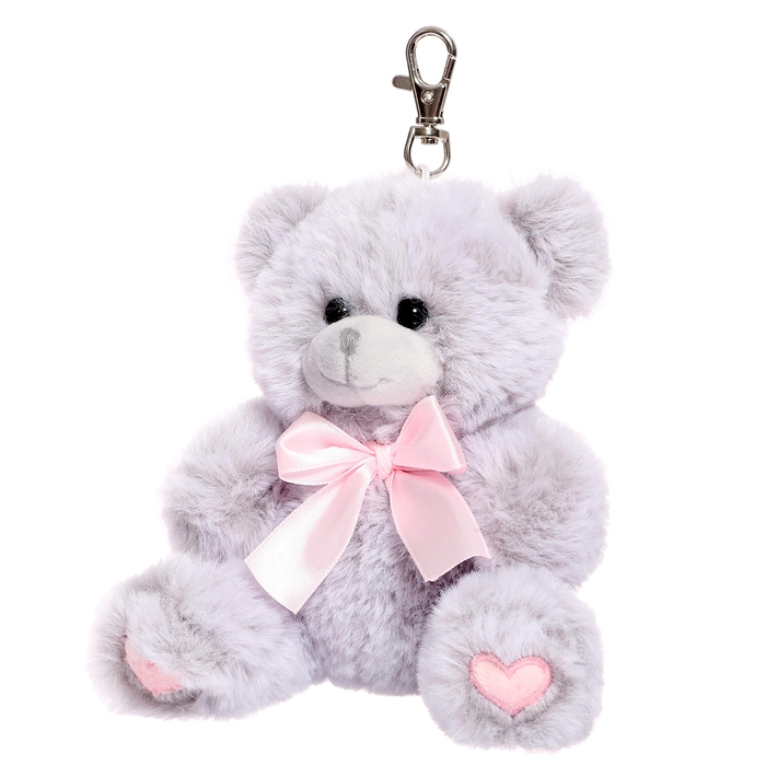 - Светло-серый цвет и бантик делают мишку привлекательным и универсальным украшением, которое украсит любой рюкзак, ключи, сумочку и т. д..