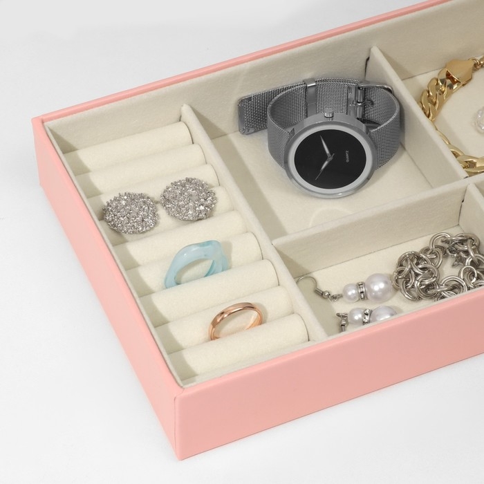 Подставка для украшений 4 ячеек, 9 полос, 24,5×15,5×4,5 см, цвет бежево-розовый