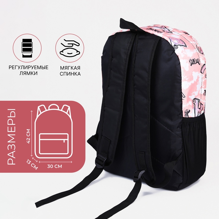 Рюкзак школьный из текстиля на молнии, 3 кармана, цвет розовый