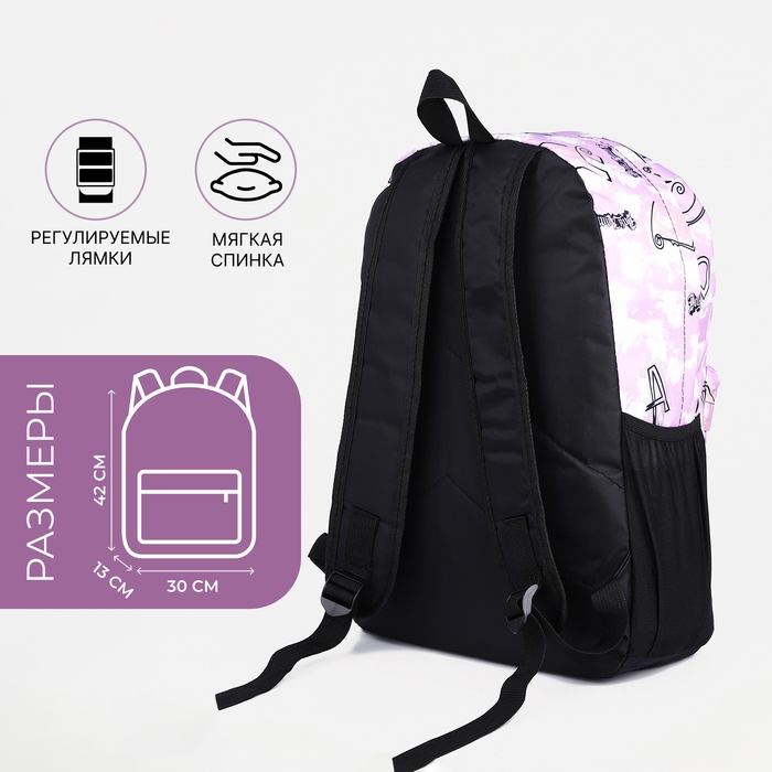 Рюкзак школьный из текстиля на молнии, 3 кармана, цвет фиолетовый