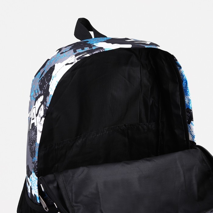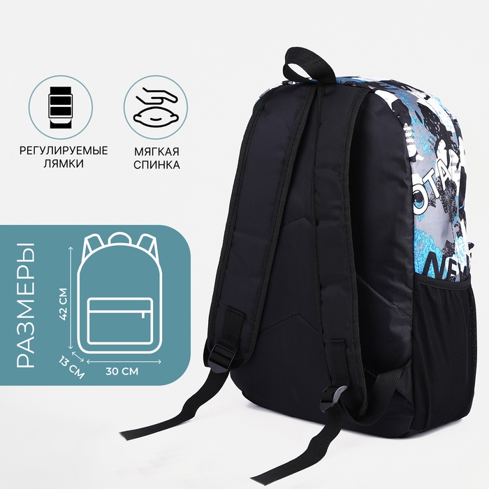 Рюкзак школьный из текстиля, 3 кармана, цвет голубой/серый