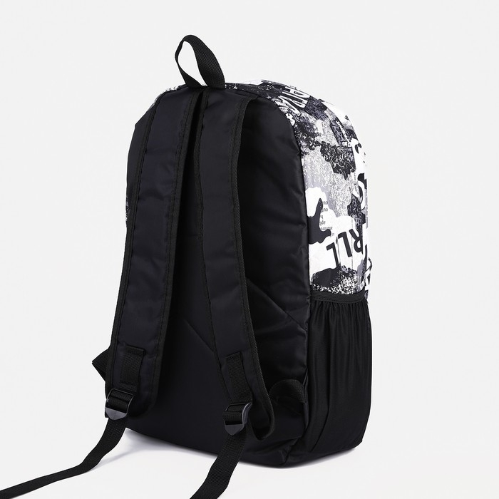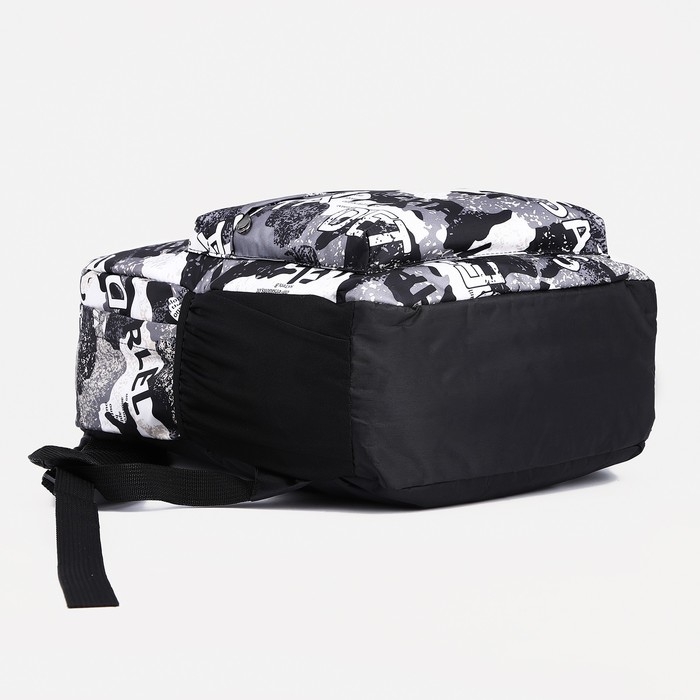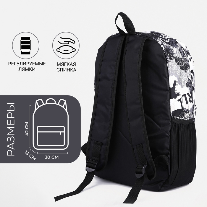 Рюкзак школьный из текстиля, 3 кармана, цвет чёрный/серый
