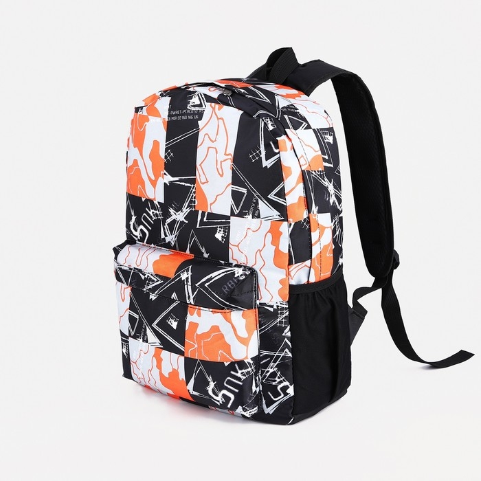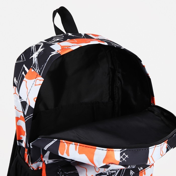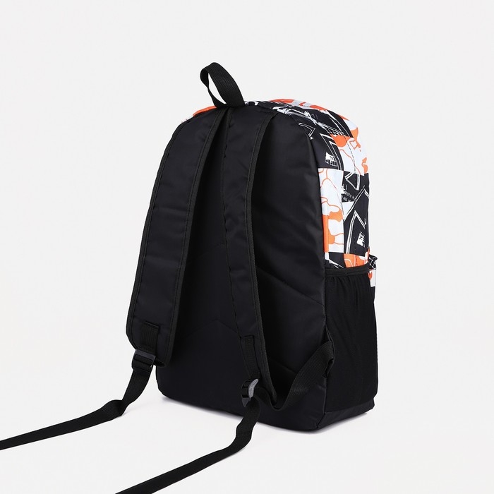 Рюкзак школьный из текстиля на молнии, 3 кармана, цвет оранжевый/чёрный