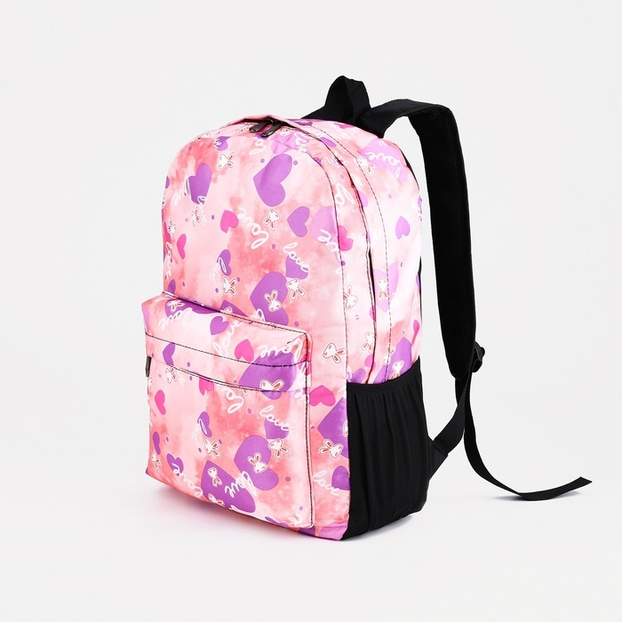 Рюкзак школьный на молнии, 3 наружных кармана, цвет розовый