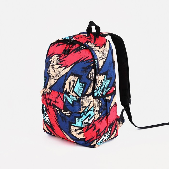 Рюкзак школьный из текстиля на молнии, 3 кармана, цвет красный/синий