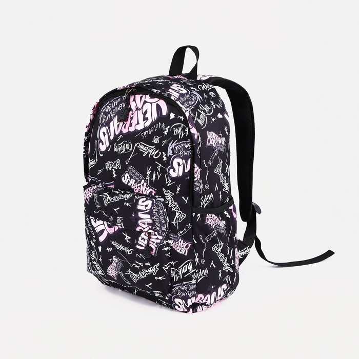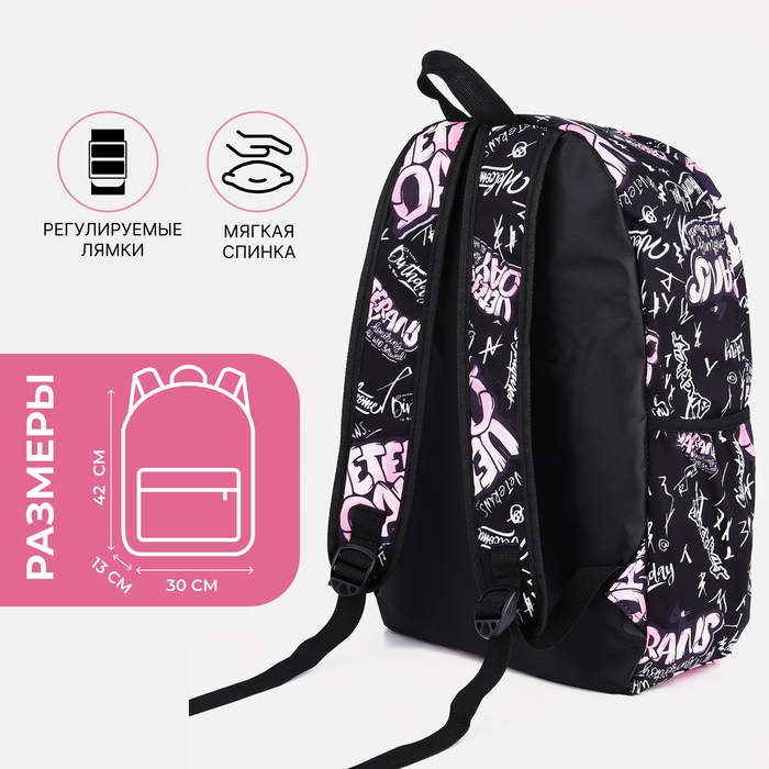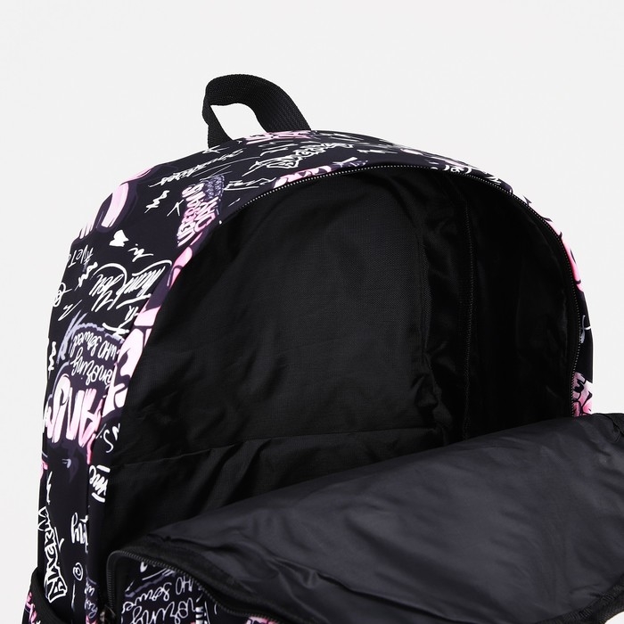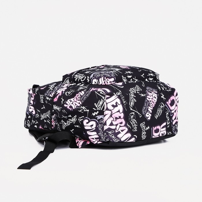 Рюкзак школьный на молнии, 3 наружных кармана, цвет розовый/чёрный