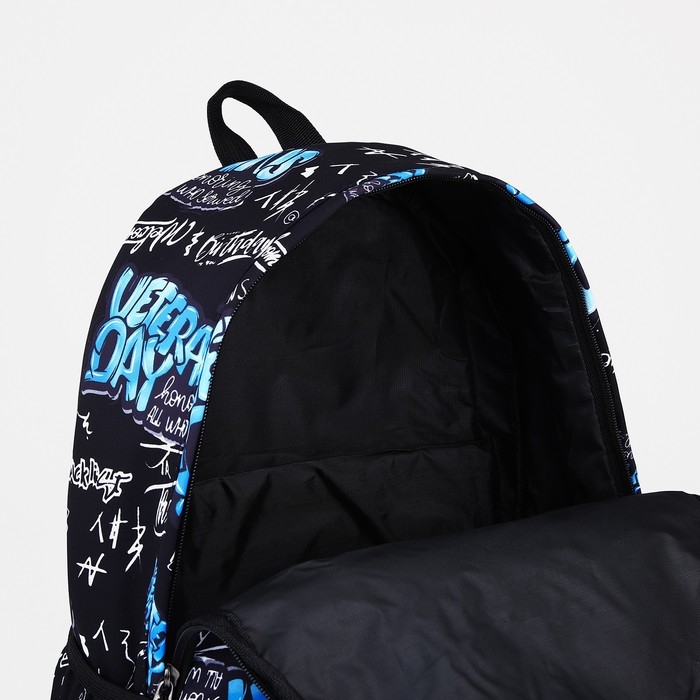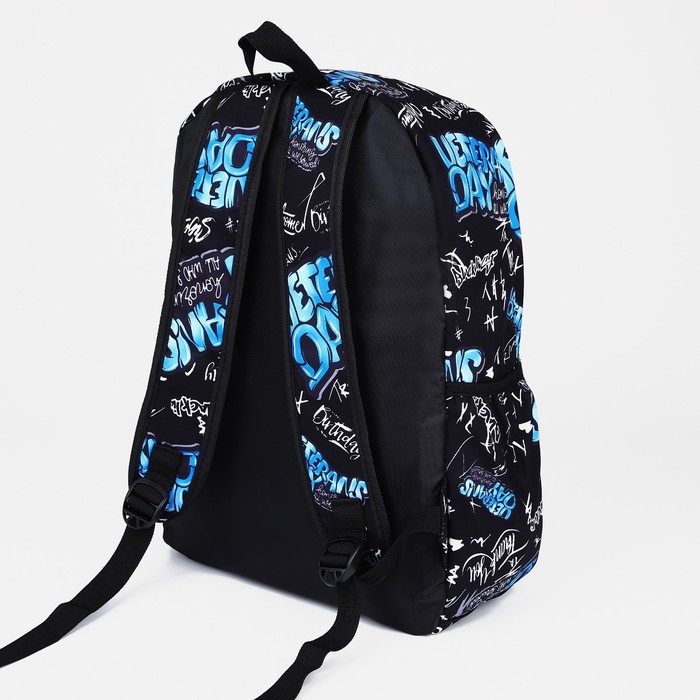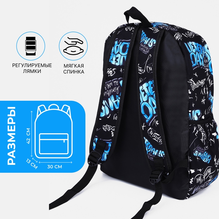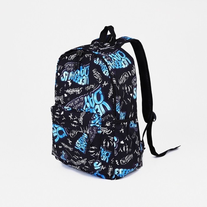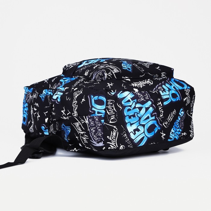 Рюкзак школьный на молнии, 3 наружных кармана, цвет синий/чёрный