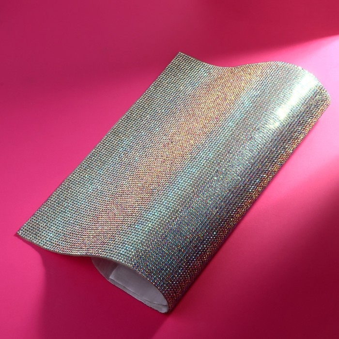 Стразы самоклеящиеся на листе, с голографией, d = 2 мм, 40 × 24 см, цвет серебряный