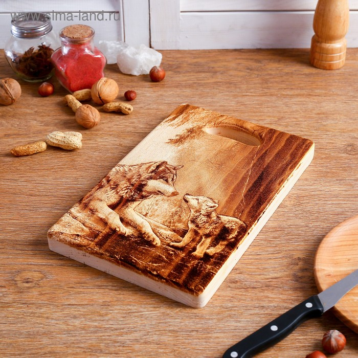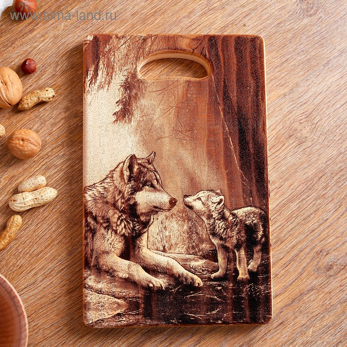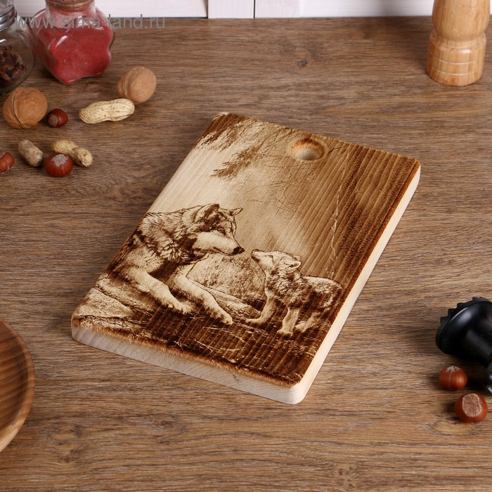 Доска из массива кедра «Волки», прямоугольная, 18 × 28 см