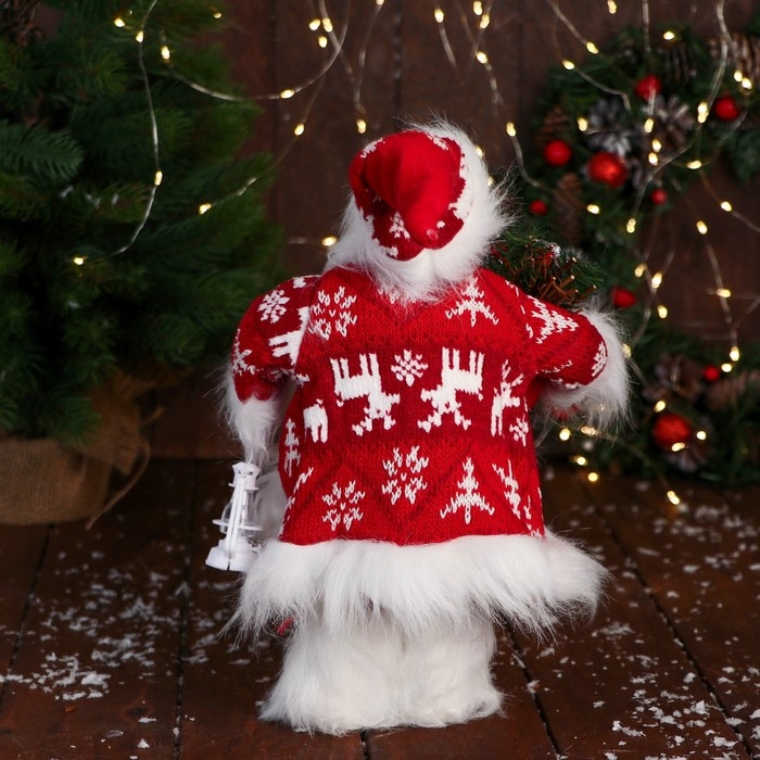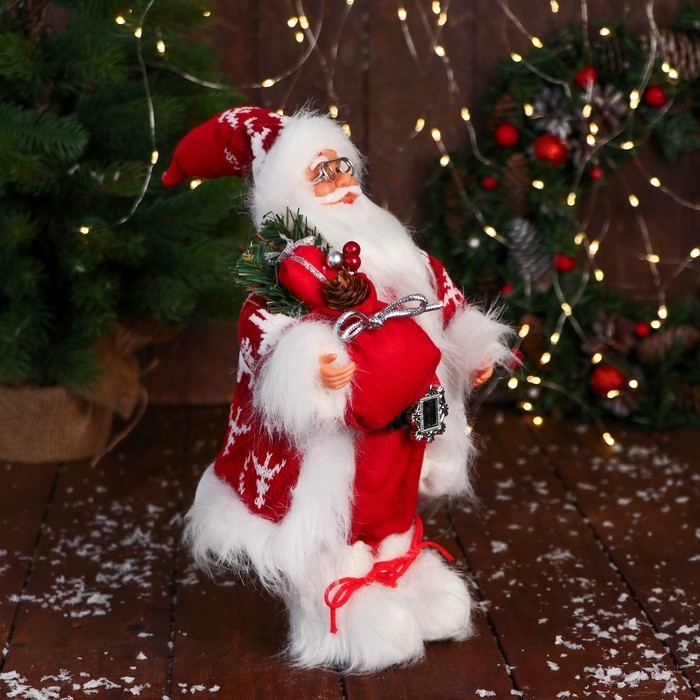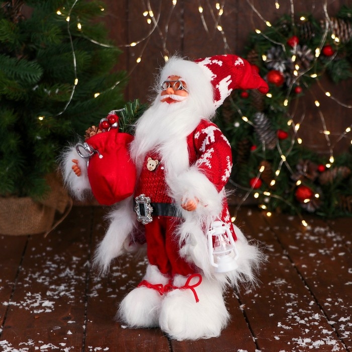 Дед Мороз "С коробками подарком и фонариком" 31 см, красный