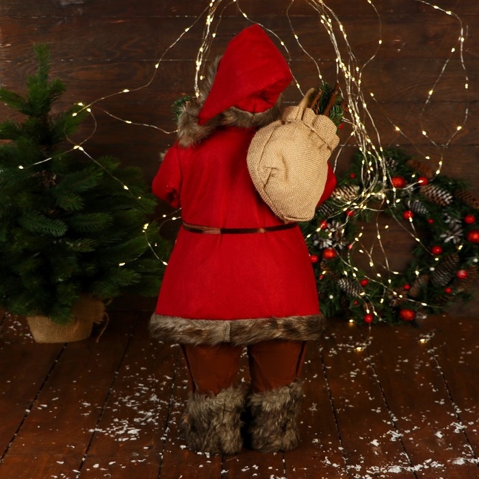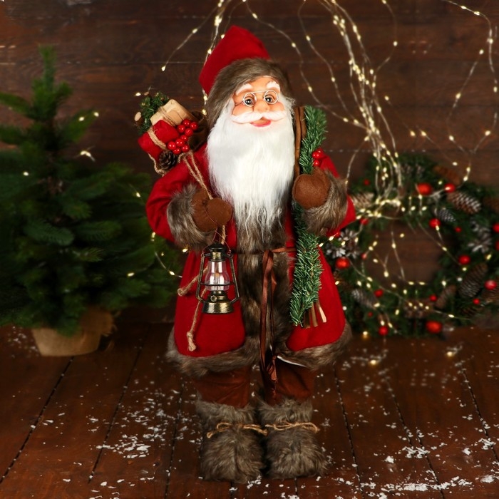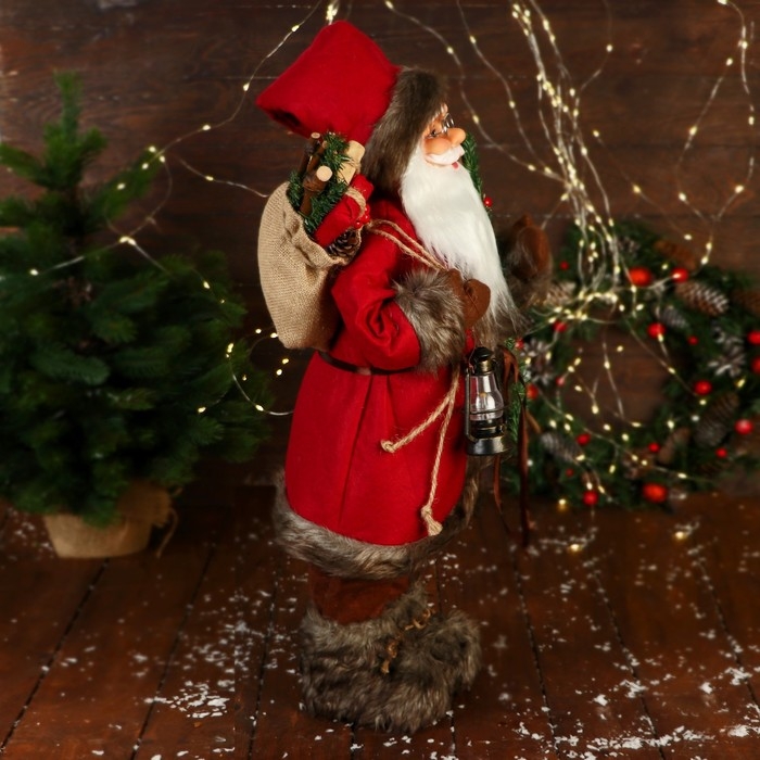 Дед Мороз "С фонариком и веточками" 60 см, красный