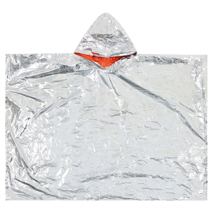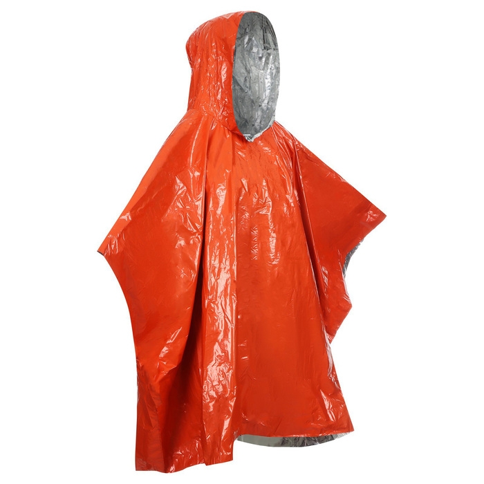Аварийный дождевик предназначен для защиты от дождя и ветра. Он функционирует как светоотражающий элемент для обнаружения человека в экстремальных ситуациях. Является важным инструментом для выживания в дикой природе. Может быть использован в условиях низкой температуры. Для этого следует вывернуть дождевик на другую сторону, алюминиевый слой притягивает солнечные лучи, сохраняет и поддерживает тепло.