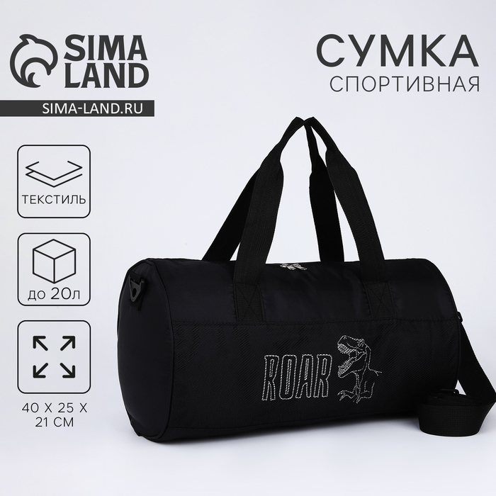 Сумка спортивная ROAR, 40х24х21, отделение на молнии, длинный ремень, черный цвет