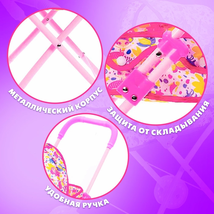 Коляска для кукол «Сладкий зайчик» универсальная, с корзиной и сумкой