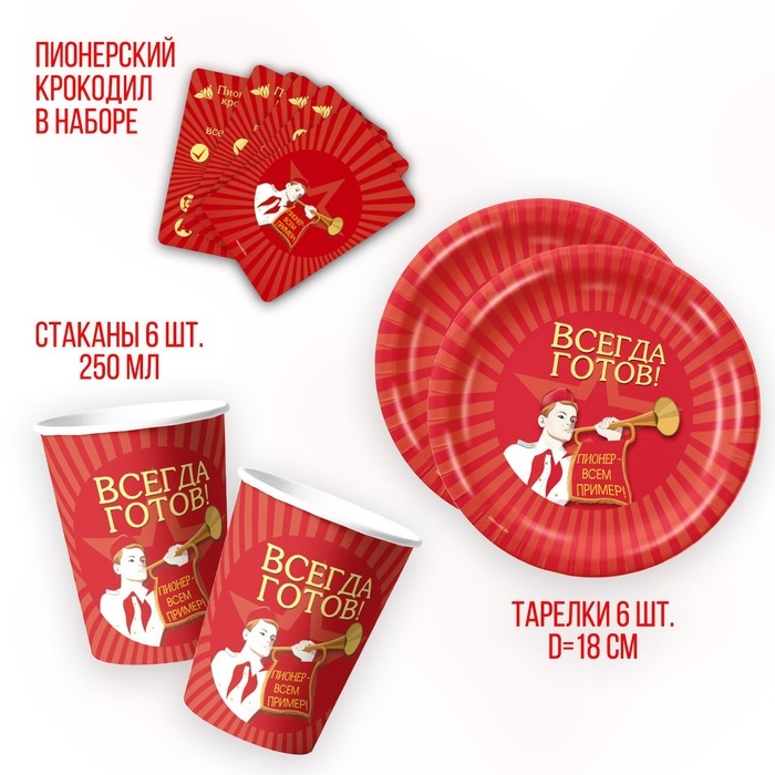 Набор бумажной посуды одноразовый Всегда готов!», 6 тарелок, 6 стаканов, игра