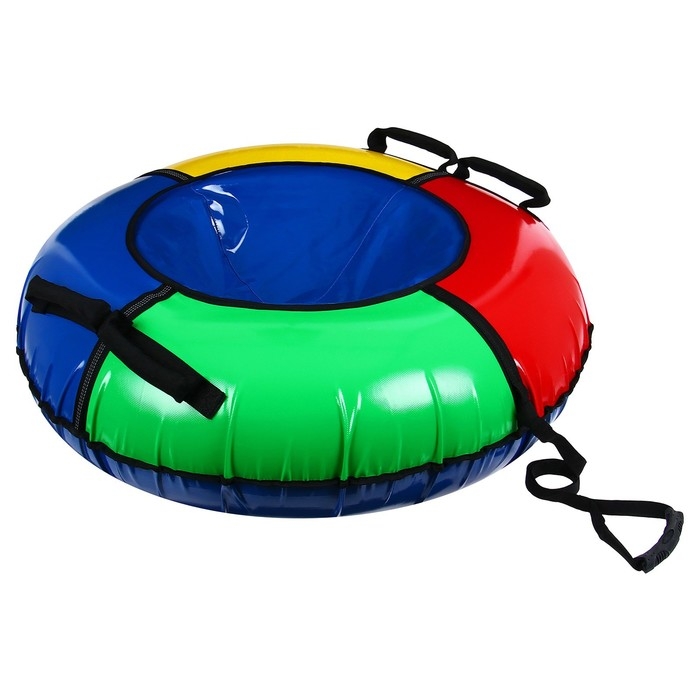 Тюбинг оснащён безопасными ручками. Его материал прослужит долго и обеспечит отличное скольжение. Фактический размер накачанного тюбинга зависит от температуры внешней среды и давления в камере.