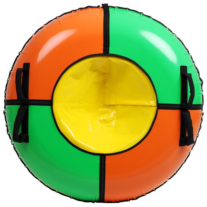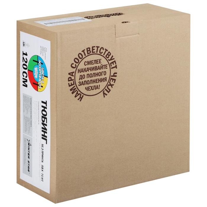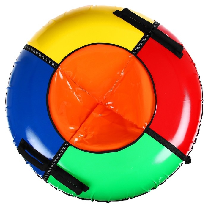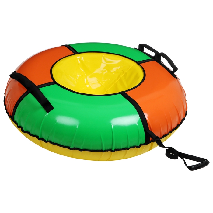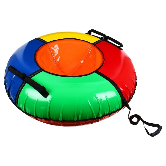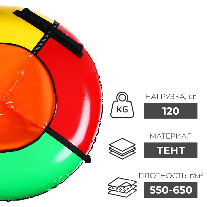 Тюбинг оснащён безопасными ручками. Его материал прослужит долго и обеспечит отличное скольжение. Фактический размер накачанного тюбинга зависит от температуры внешней среды и давления в камере.
