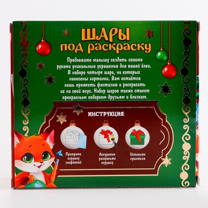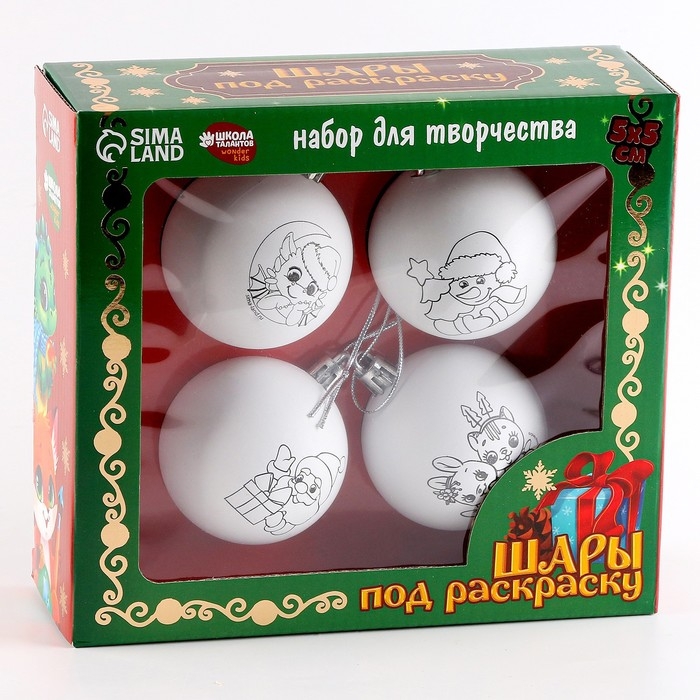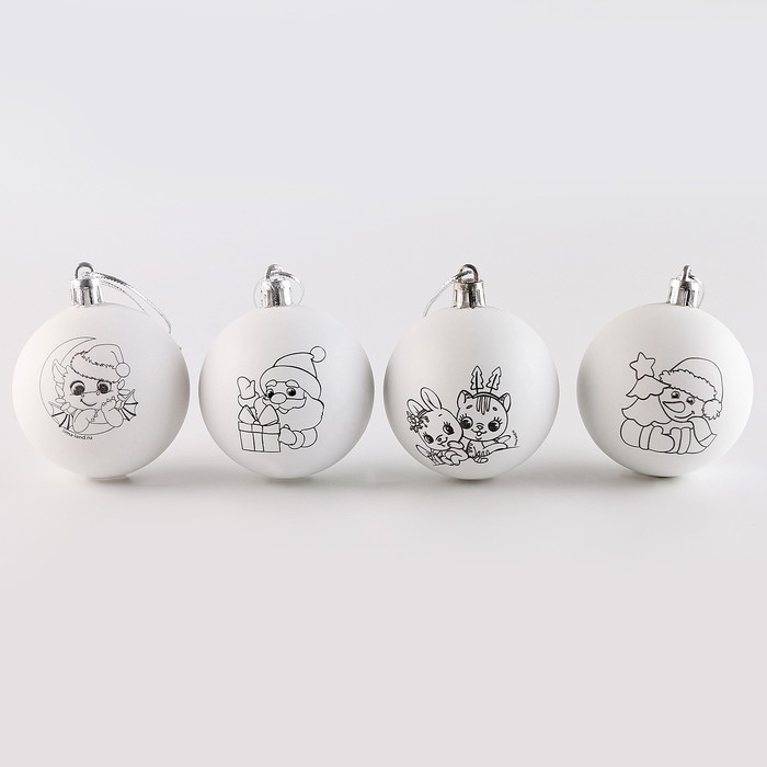 Ёлочные шары под раскраску на новый год «Волшебный праздник», 4 шт, d = 5,5см, новогодний набор для творчества